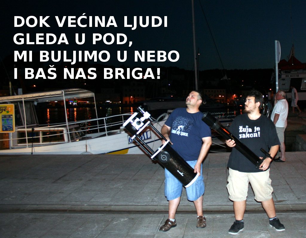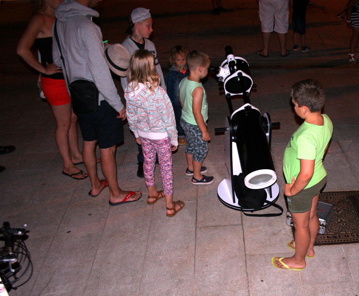 U utorak 04. srpnja 2017. smo održali promatranje u centru grada na Rivi lošinjskih kapetana pored Bistroa pizzerije Ancora. Kroz teleskope je pogledalo 200-tinjak ljudi, a gledali su Mjesec, Jupiter i Saturn. Ovo je vjerojatno zadnje javno promatranje u centru grada za 2017. godinu obzirom da nema potpore od Turističke zajednice i da nam je Grad odrezao proračun za 50% pa ćemo se nažalost morati usmjeriti na održavanje samo ugovorenih promatranja kako bi naše astronomsko društvo nadoknadilo manjak sredstava i preživjelo. Eto, dok ekipa u Gradu bulji u pod, mi ne odustajemo gledati u nebo!