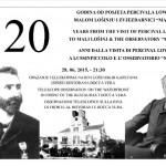 Astronomsko društvo “Leo Brenner” u suradnji sa Turističkom zajednicom Grada Malog Lošinja u nedjelju 28. lipnja 2015. organiziralo je astronomsko opažanje teleskopima na Rivi lošinjskih kapetana uz projekciju o povijesnom posjetu poznatog američkog astronoma Percivala Lowella Malom Lošinju i Zvjezdarnici “Manora”. Naime, Lowel je posjetio Lošinj i četiri noći motrio nebo zajedno sa Leom Brennerom […]